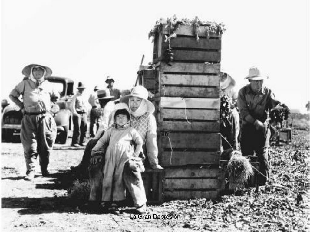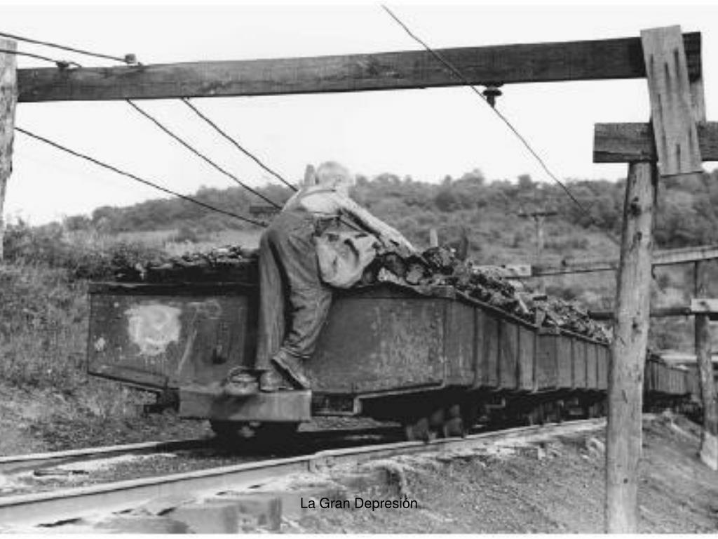 Otras Causas de la Gran Depresión. • No se fomento en forma proporcional, el desarrollo de otras industrias claves, como lo son la del carbón y la textil. • Deambulaba el desempleo y el subempleo con malos salarios. • El excedente de producción en el sector primario (Agrícola), abarataba los precios, ocasionando una carencia de solvencia a los productores. La Gran Depresión