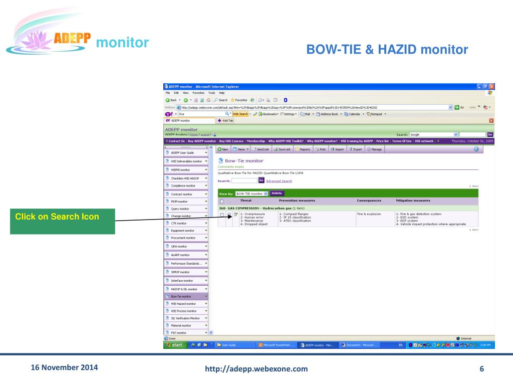 BOW-TIE & HAZID monitor Click on Search Icon http://adepp.webexone.com