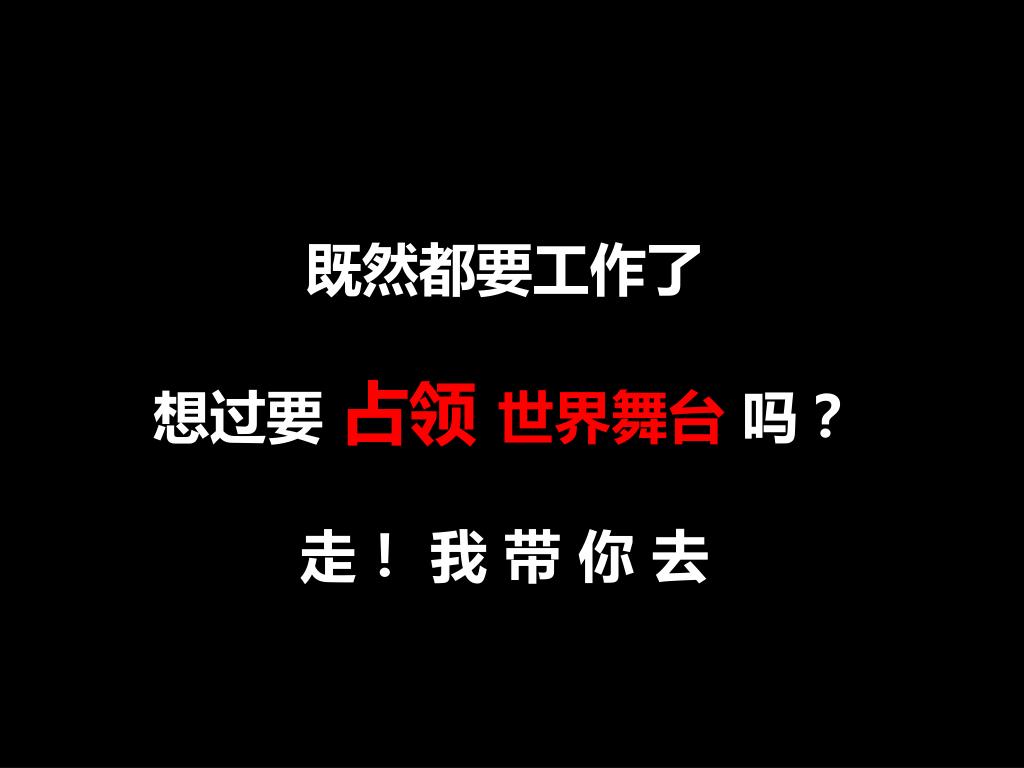 既然都要工作了 想过要 占领 世界舞台 吗? 走! 我 带 你 去