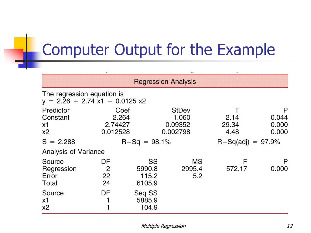 Computer Output for the Example Multiple Regression