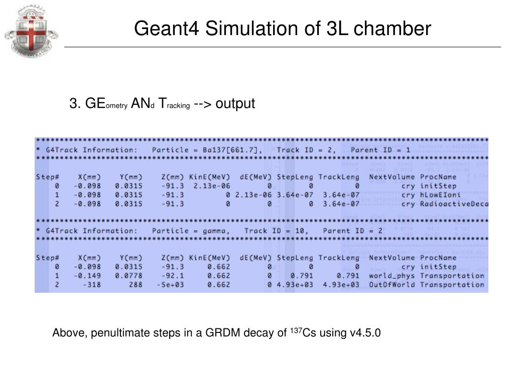 Geant4 Simulation of 3L chamber 3. GEometry ANd Tracking --> output Above, penultimate steps in a GRDM decay of 137Cs using v4.5.0