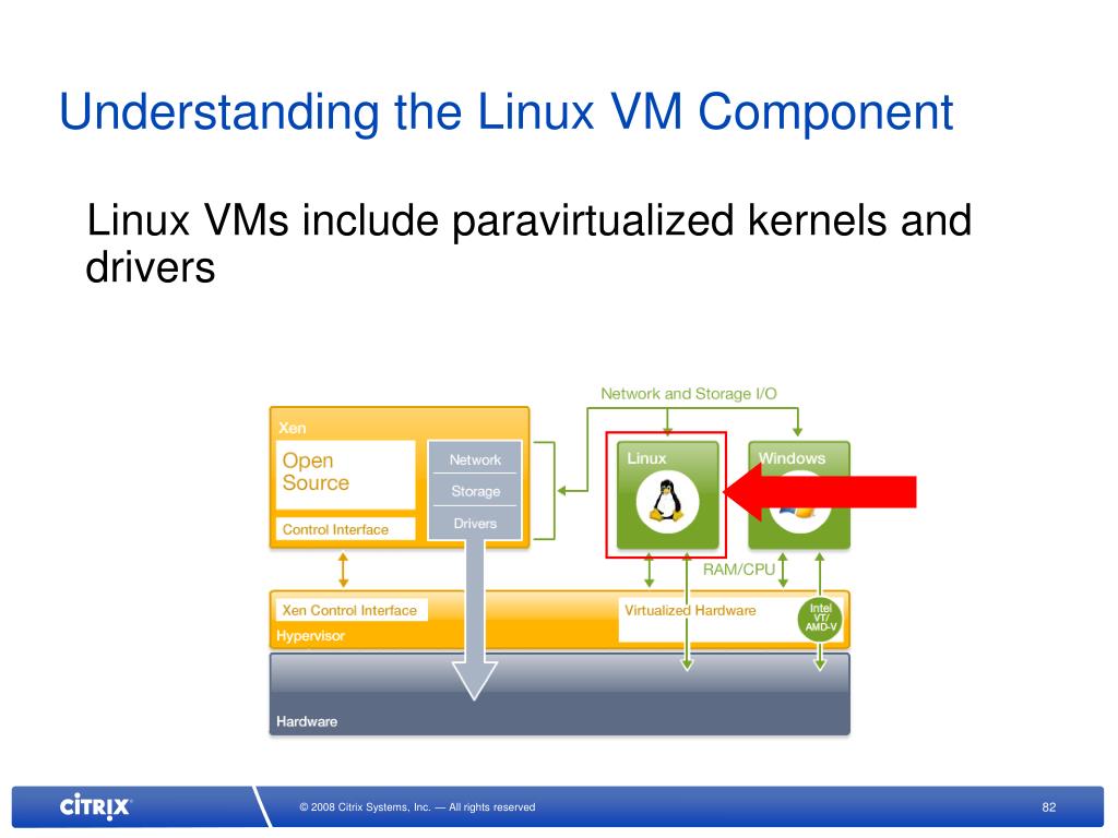 Understanding the Linux VM Component Linux VMs include paravirtualized kernels and drivers