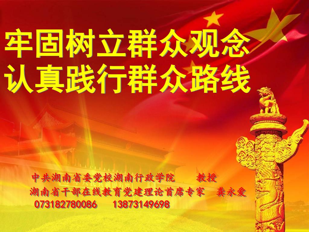 牢固树立群众观念 认真践行群众路线 中共湖南省委党校湖南行政学院 教授 湖南省干部在线教育党建理论首席专家 龚永爱 073182780086 13873149698