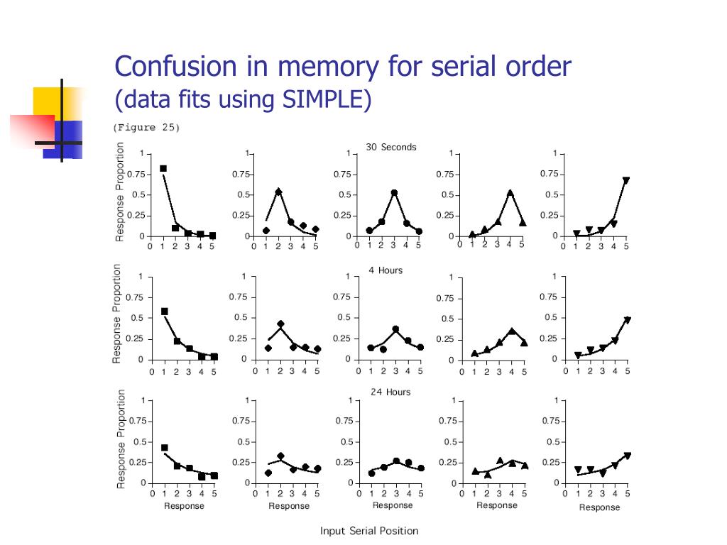 Serial position in immediate free recall Data from Murdock, 1962; model fits using SIMPLE (Brown, Neath & Chater)