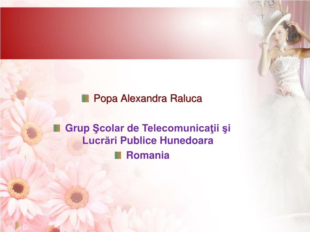 Popa Alexandra Raluca • GrupŞcolar de TelecomunicaţiişiLucrăriPublice Hunedoara • Romania