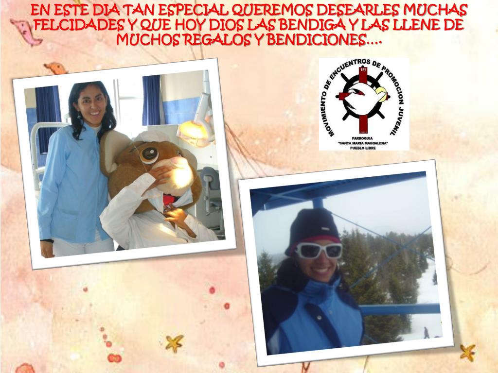 EN ESTE DIA TAN ESPECIAL QUEREMOS DESEARLES MUCHAS FELCIDADES Y QUE HOY DIOS LAS BENDIGA Y LAS LLENE DE MUCHOS REGALOS Y BENDICIONES….