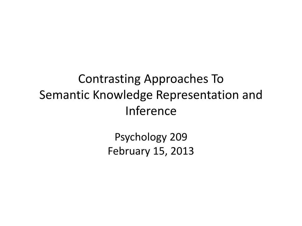 Contrasting Approaches ToSemantic Knowledge Representation and Inference Psychology 209February 15, 2013
