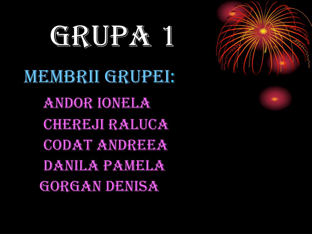 GRUPA 1 MEMBRIi GRUPEI: ANDOR IONELA CHEREJI RAlUCA CODAT ANDREEA DANILA PAMELA GORGAN DENISA