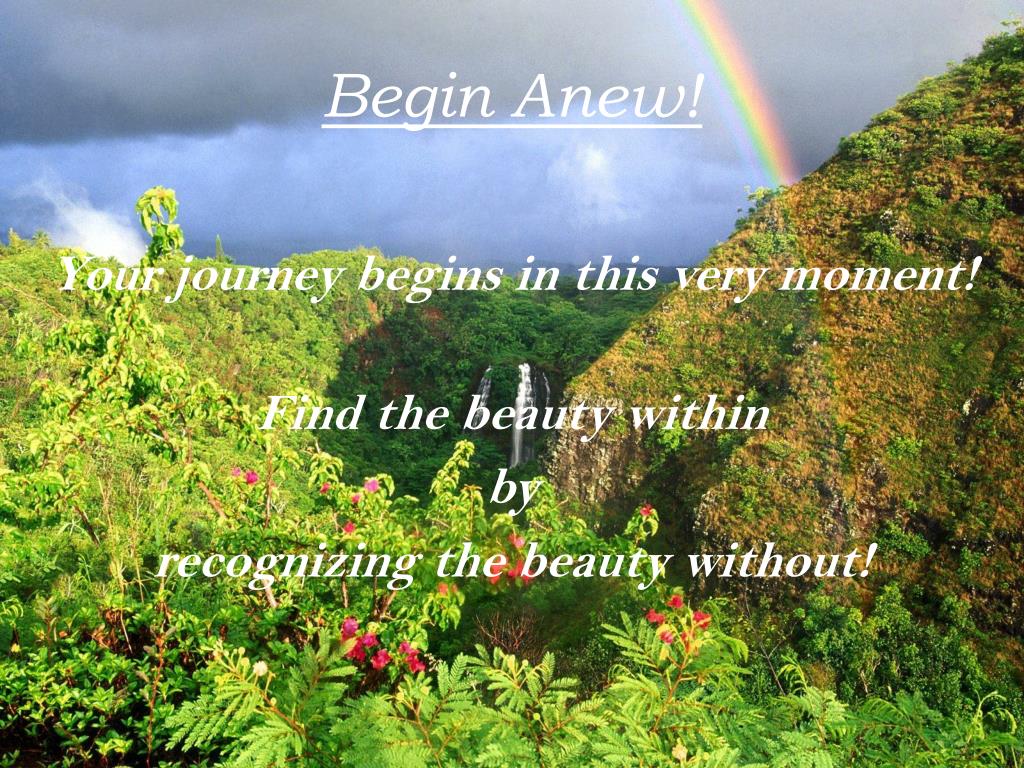 Begin Anew! Your journey begins in this very moment! Find the beauty within by recognizing the beauty without!
