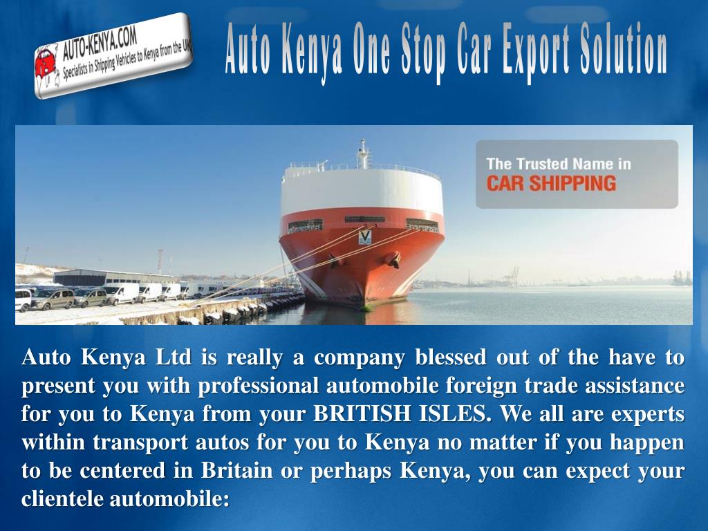 Auto Kenya One Stop Car Export Solution Auto Kenya Ltd is really a company blessed out of the have to present you with professional automobile foreign trade assistance for you to Kenya from your BRITISH ISLES. We all are experts within transport autos for you to Kenya no matter if you happen to be centered in Britain or perhaps Kenya, you can expect your clientele automobile: