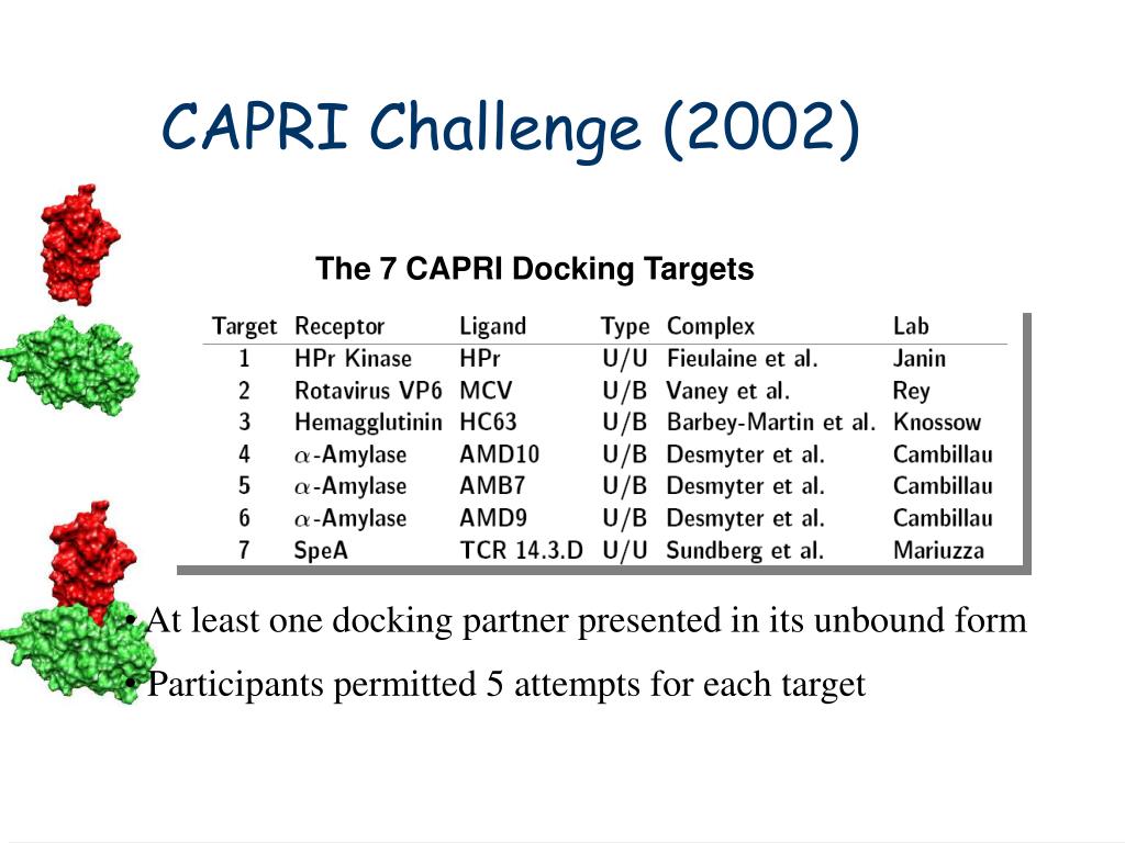 CAPRI Challenge (2002) The 7 CAPRI Docking Targets • At least one docking partner presented in its unbound form • Participants permitted 5 attempts for each target