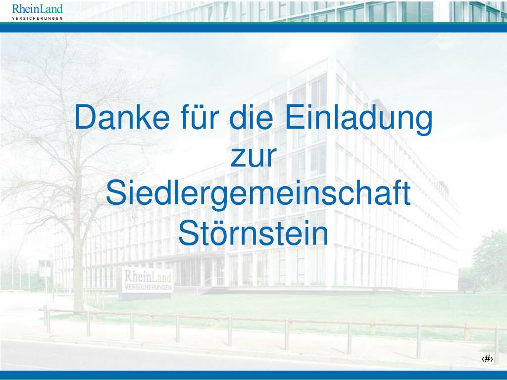 Rhein Land Versicherungen. Danke für die Einladung zur Siedlergemeinschaft Störnstein. Rhein Land Versicherungen Regionaldirektion Stuttgart Generalagentur Öner Cetin Generalagentur Fröhlich Christian zuständig für den BSB Oberpfalz. Agenda:. Wer sind wir?