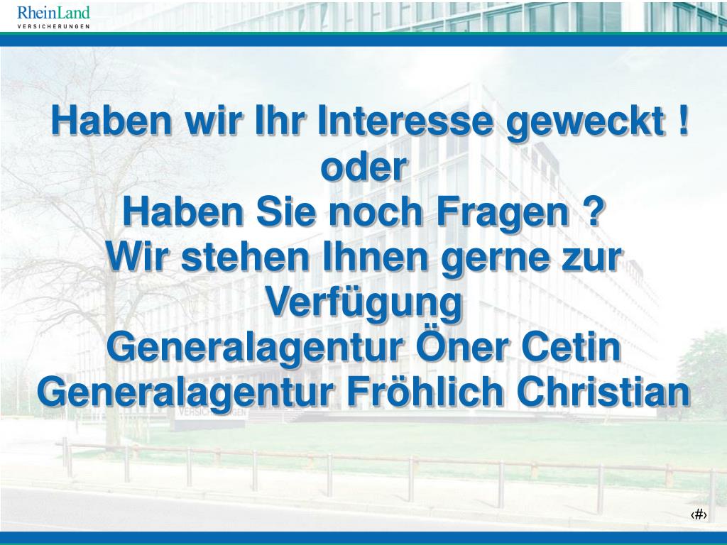 Haben wir Ihr Interesse geweckt !oder Haben Sie noch Fragen ?Wir stehen Ihnen gerne zur VerfügungGeneralagentur Öner CetinGeneralagentur Fröhlich Christian