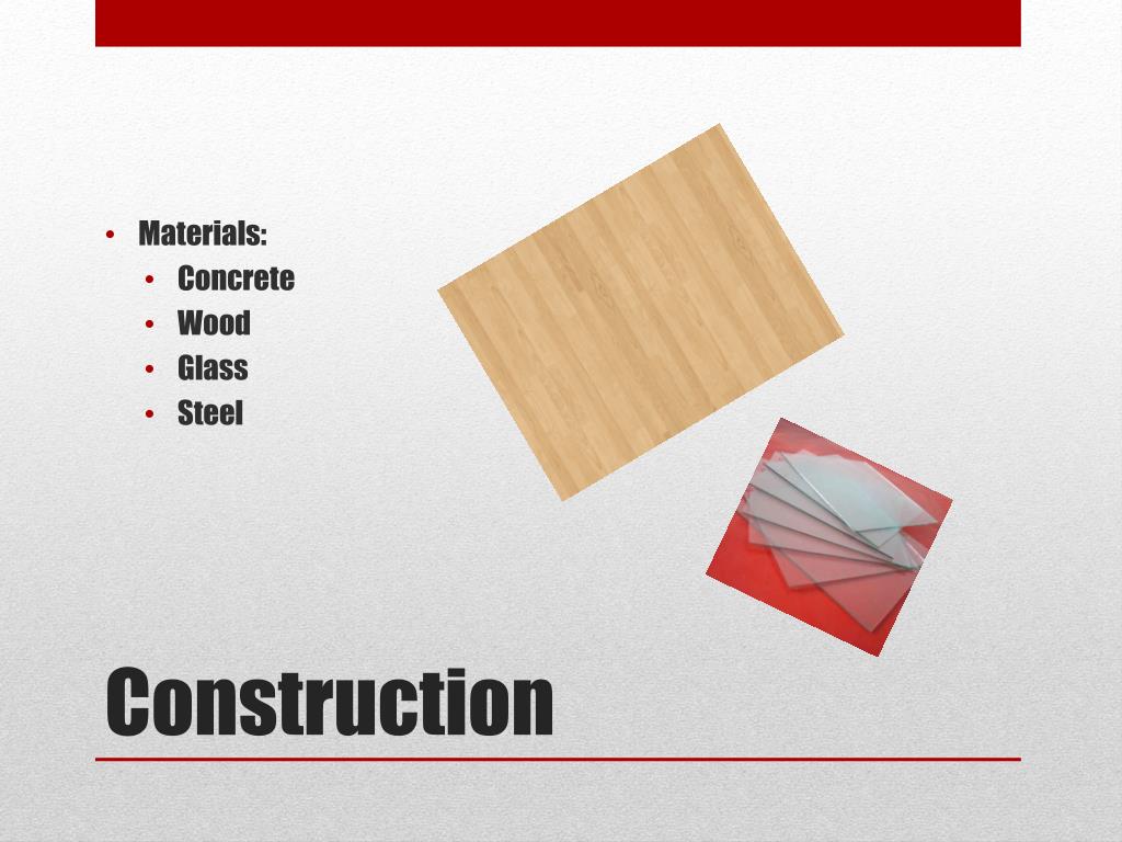 Materials: • Concrete • Wood • Glass • Steel Construction