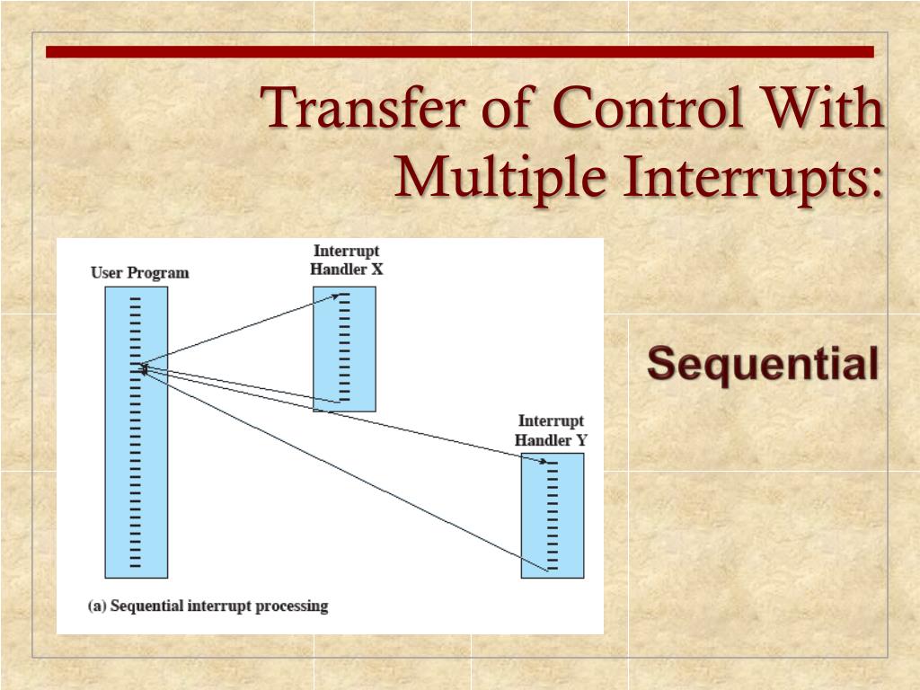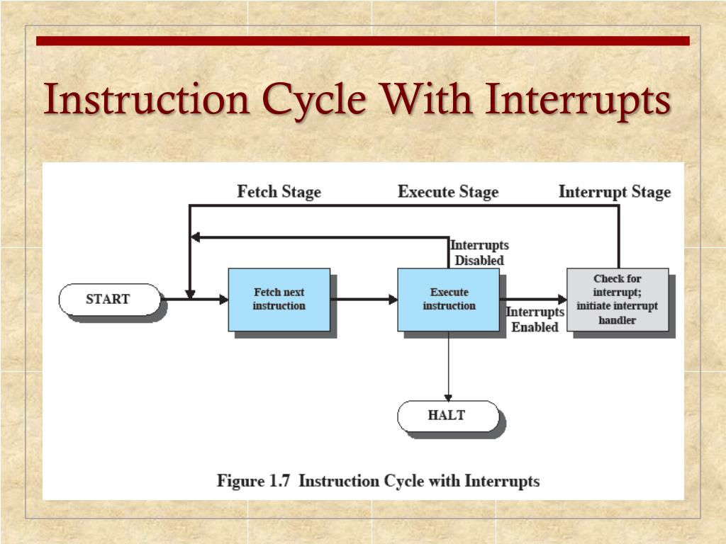 Interrupts • Interrupt the normal sequencing of the processor • Provided to improve processor utilization • most I/O devices are slower than the processor • processor must pause to wait for device • wasteful use of the processor
