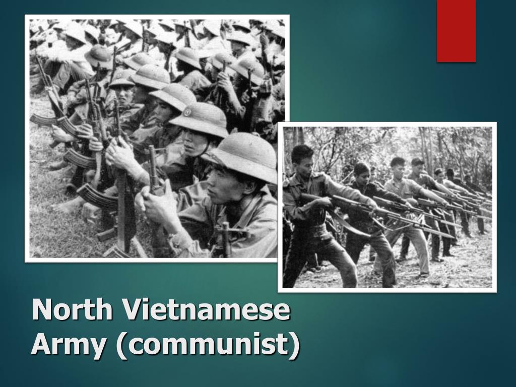 Vietnam War 1965-1975. Where is Vietnam?. Map of War. North Vietnamese Army (communist). Vietcong Forces (communist). U.S. Soldier. Air Mobility (U.S.). Jungle Warfare. Napalm Strike (U.S.). Guerilla Warfare. Spreading of Agent Orange (chemical defoliant). American Fire Base.