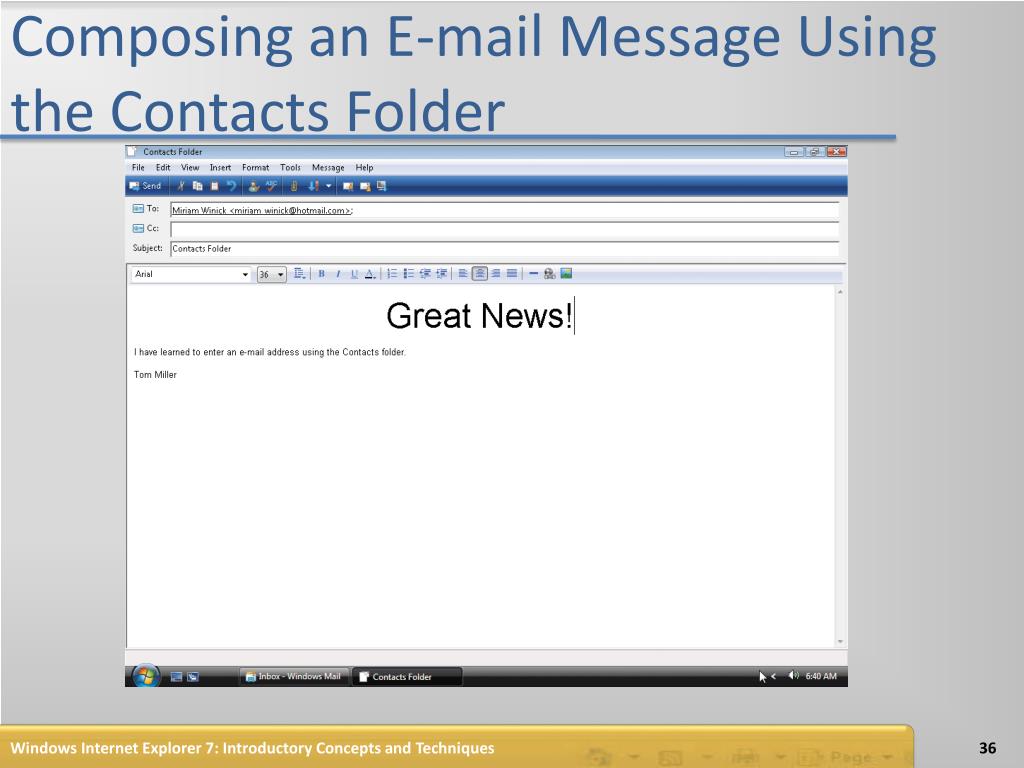 Composing an E-mail Message Using the Contacts Folder Windows Internet Explorer 7: Introductory Concepts and Techniques