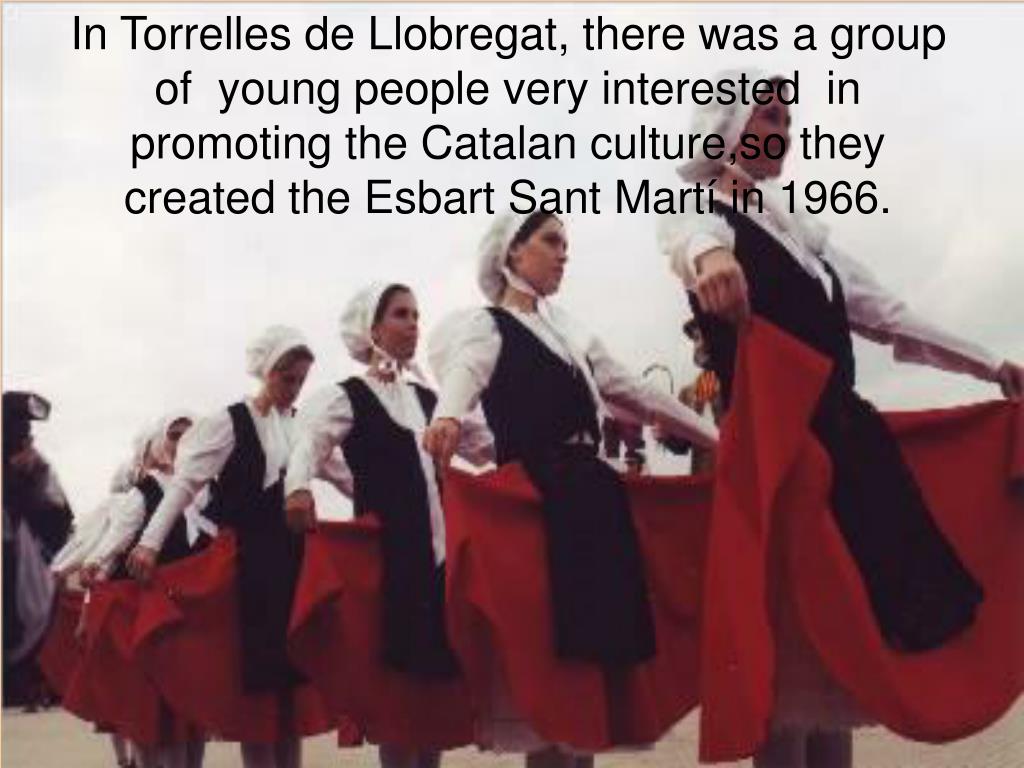 In Torrelles de Llobregat, there was a group of young people very interested in promoting the Catalan culture,so they created the Esbart Sant Martí in 1966.