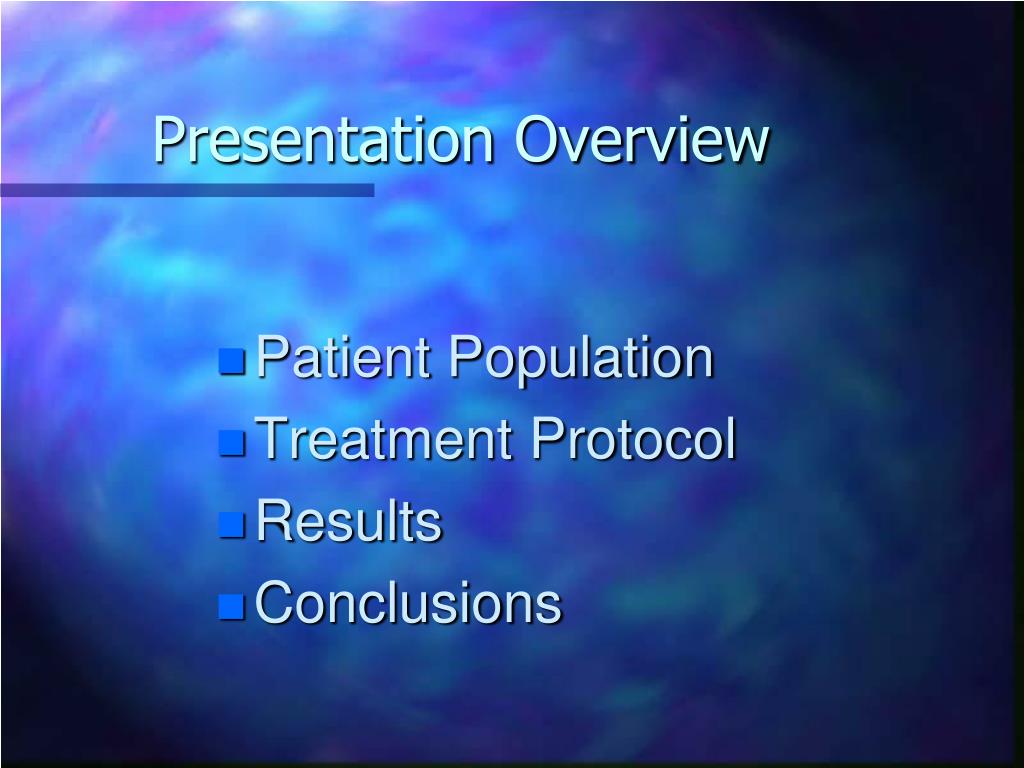 Presentation Overview • Patient Population • Treatment Protocol • Results • Conclusions