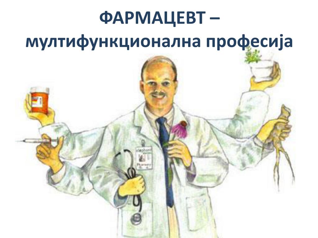 ФАРМАЦЕВТ ВО АПТЕКА • последна алка од системот на здраствена заштита • 700 регистрирани аптеки во Р.Македонија • најдоцна од 2017 година задолжително 2 фармацевти во аптека