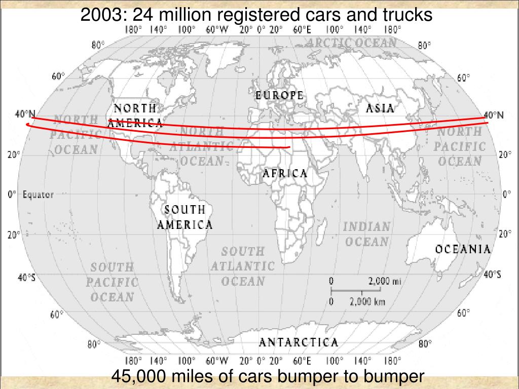 2003: 24 million registered cars and trucks • 45,000 miles of cars bumper to bumper