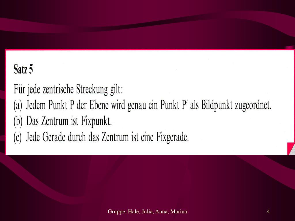 Begriff der zentrischen Streckung Konstruktion der Bildfigur Mathevortrag: Zentrische Streckung Gruppe: Hale, Julia, Anna, Marina