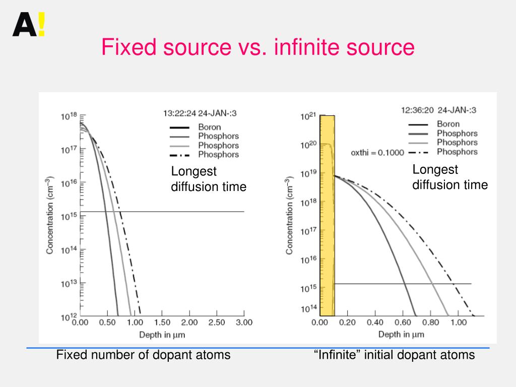 Fixed source vs. infinite source Longest diffusion time Longest diffusion time Fixed number of dopantatoms “Infinite” initial dopant atoms