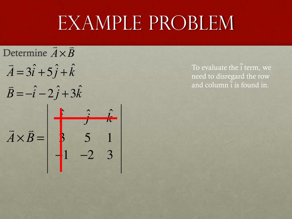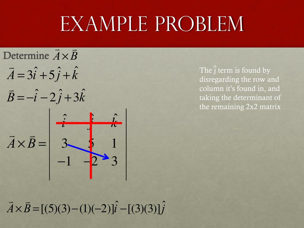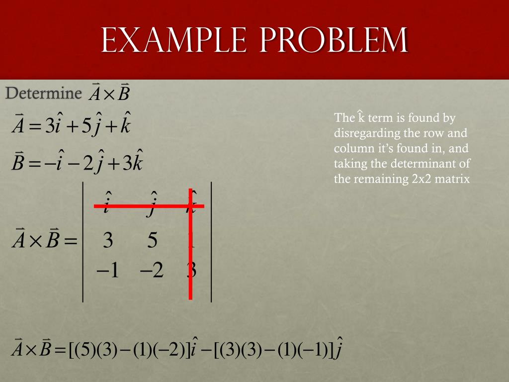 Example Problem Determine The k term is found by disregarding the row and column it’s found in, and taking the determinant of the remaining 2x2 matrix