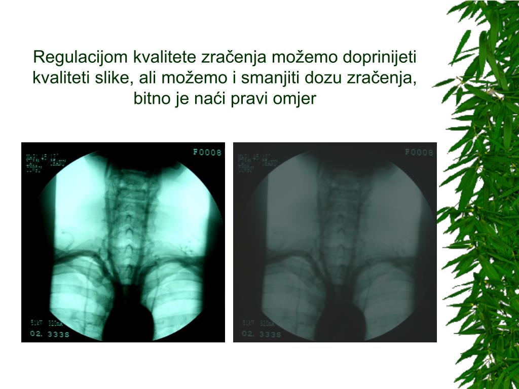 Regulacijom kvalitete zračenja možemo doprinijeti kvaliteti slike, ali možemo i smanjiti dozu zračenja, bitno je naći pravi omjer