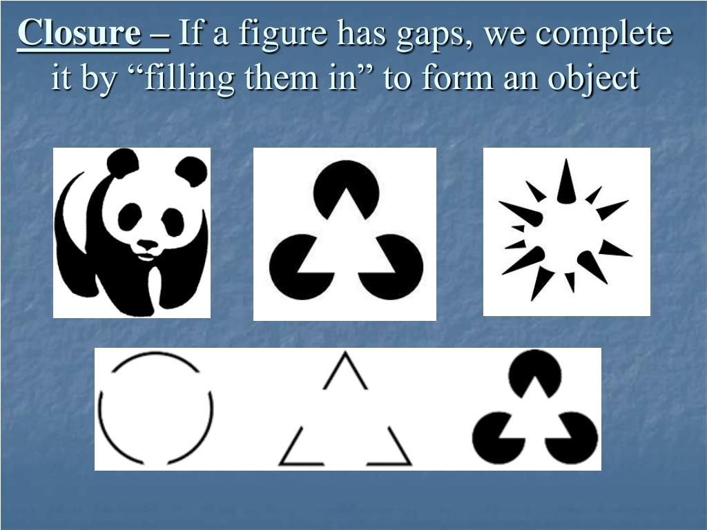 Closure – If a figure has gaps, we complete it by “filling them in” to form an object