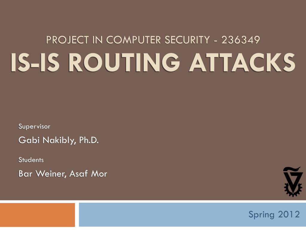 Project in Computer Security - 236349 IS-IS Routing Attacks. Supervisor Gabi Nakibly, Ph.D. Students Bar Weiner, Asaf Mor. Spring 2012. Project Description.