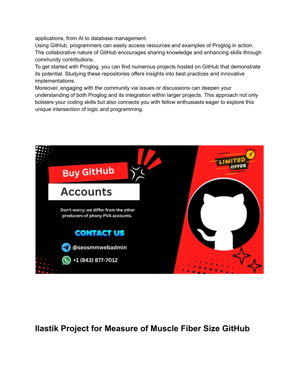 applications, from AI to database management. Using GitHub, programmers can easily access resources and examples of Proglog in action. The collaborative nature of GitHub encourages sharing knowledge and enhancing skills through community contributions. To get started with Proglog, you can find numerous projects hosted on GitHub that demonstrate its potential. Studying these repositories offers insights into best practices and innovative implementations. Moreover, engaging with the community via issues or discussions can deepen your understanding of both Proglog and its integration within larger projects. This approach not only bolsters your coding skills but also connects you with fellow enthusiasts eager to explore this unique intersection of logic and programming. Ilastik Project for Measure of Muscle Fiber Size GitHub