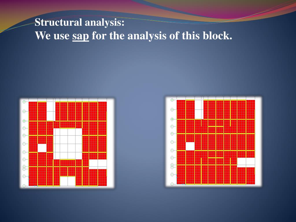 Structural system: • Ln = 410 – 30 = 380. • Then the min thickness that used: • h = 380 / 18.5 = 20.5 cm. • The slab thickness is taken to be 25 cm. In this block we use one way ribbed slab with 25 cm depth. Design of Block B: