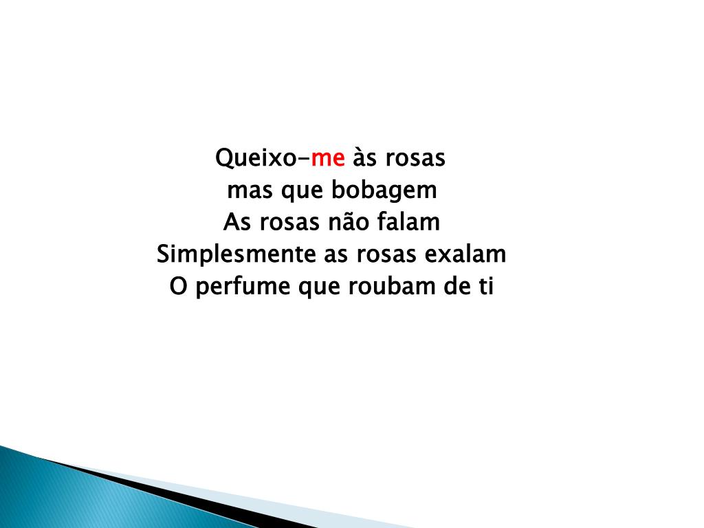 Queixo-me às rosas mas que bobagem As rosas não falam Simplesmente as rosas exalam O perfume que roubam de ti