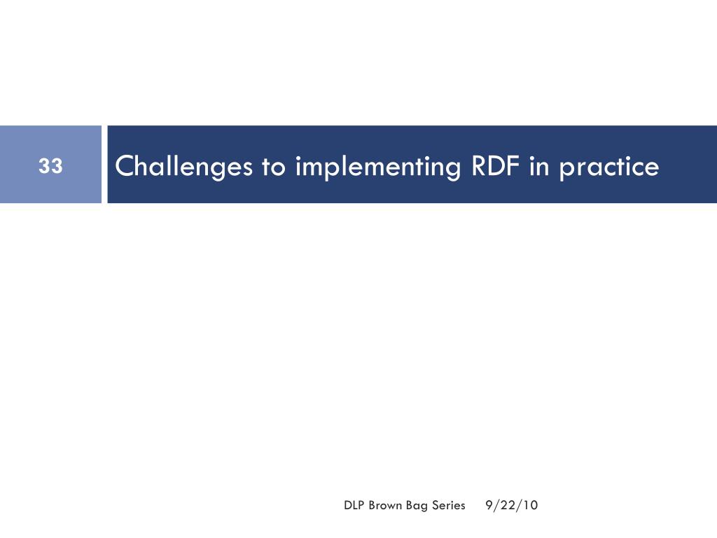 Challenges to implementing RDF in practice DLP Brown Bag Series