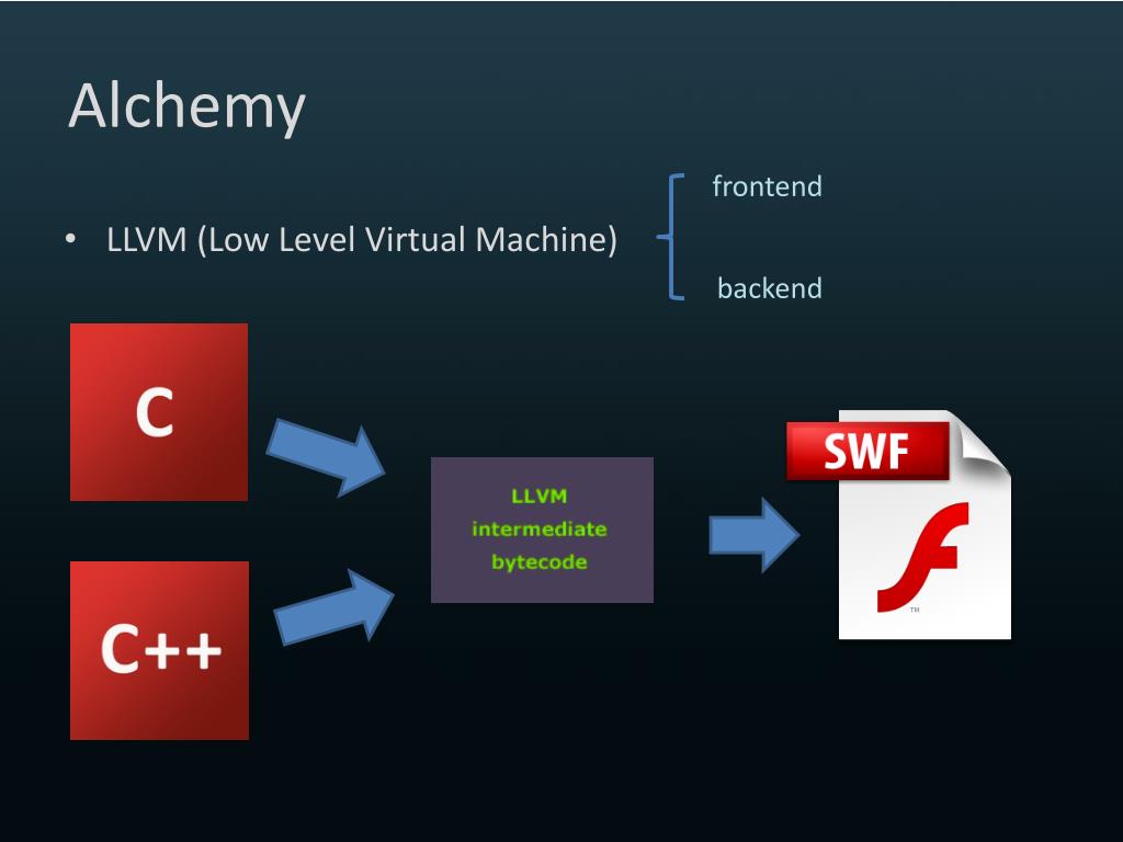 Alchemy frontend • LLVM (Low Level Virtual Machine) backend