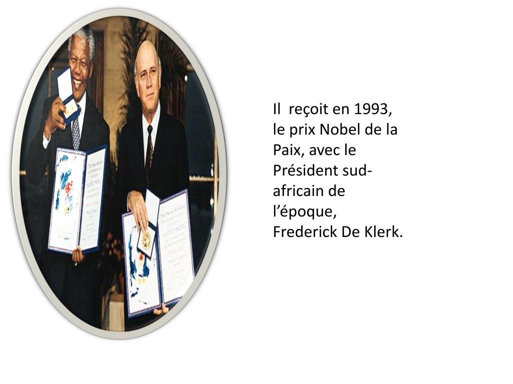 Il reçoit en 1993, le prix Nobel de la Paix, avec le Présidentsud-africainde l’époque, Frederick De Klerk.