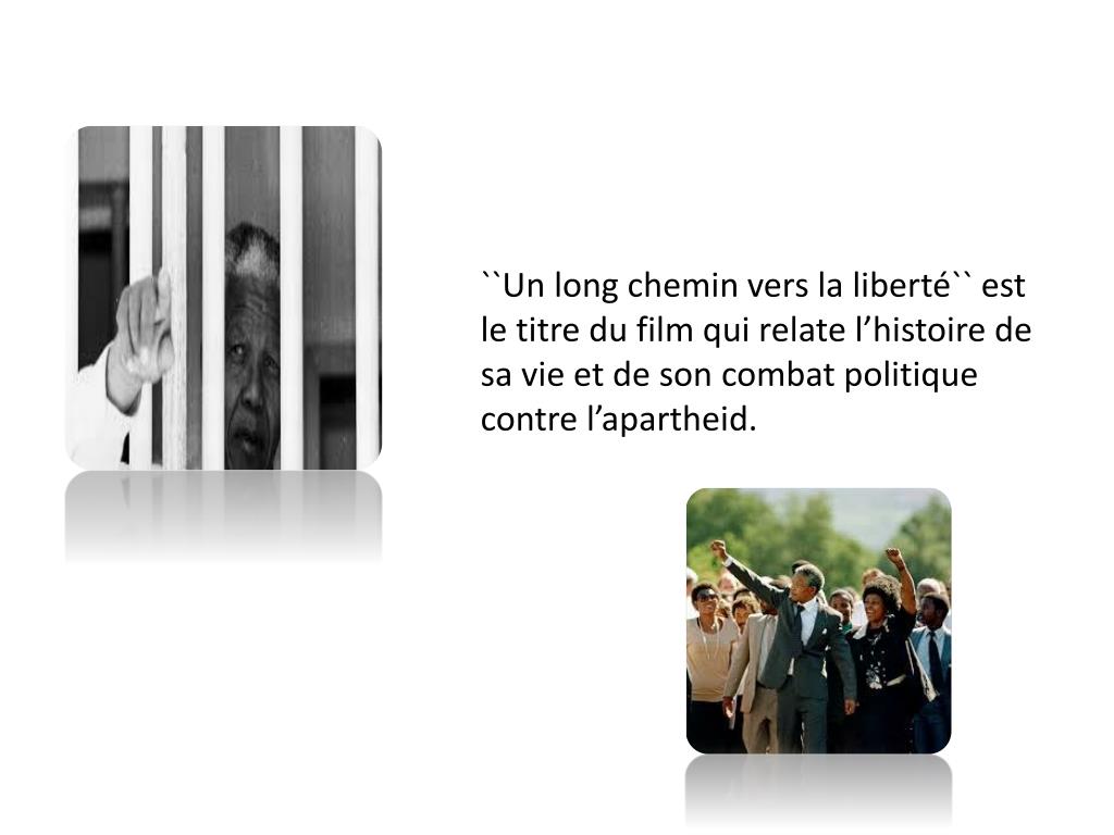 ``Un long chemin vers la liberté`` est le titre du film qui relate l’histoire de sa vie et de son combat politique contre l’apartheid.