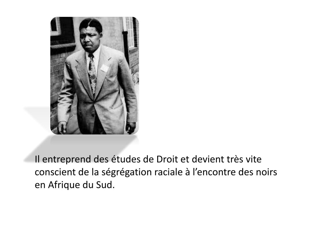 Il entreprend des études de Droit et devient très vite conscient de la ségrégation raciale à l’encontre des noirs en Afrique du Sud.
