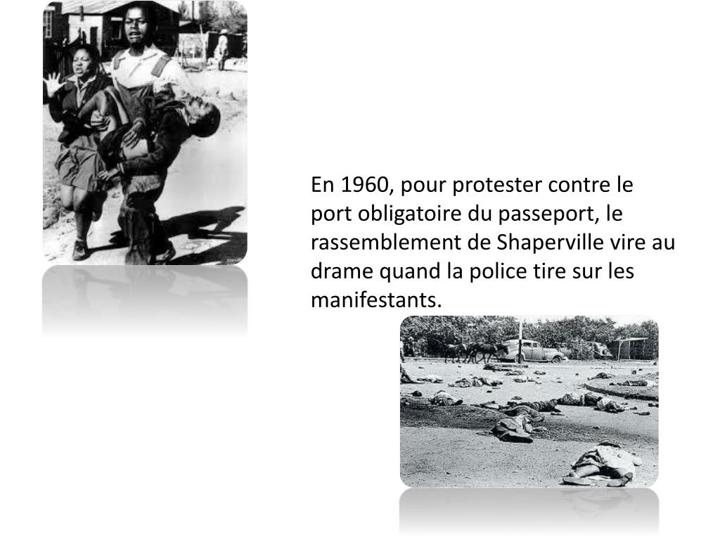En 1960, pour protester contre le port obligatoire du passeport, le rassemblement de Shaperville vire au drame quand la police tire sur les manifestants.