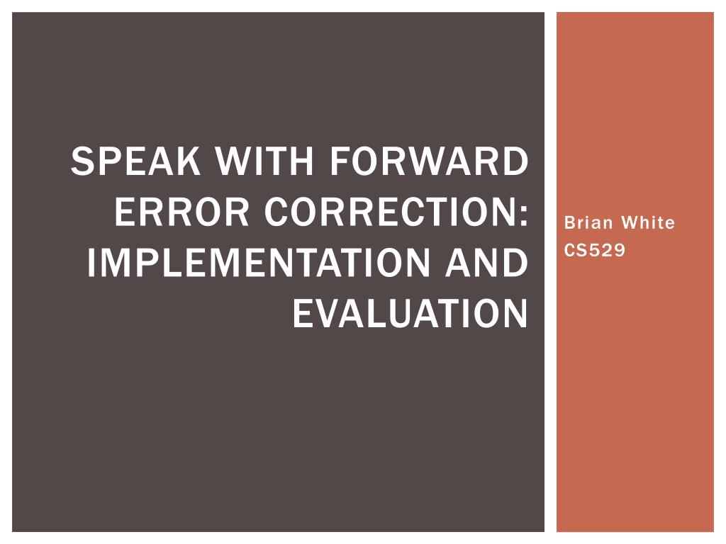 Speak with Forward error correction: Implementation and Evaluation Brian White CS529