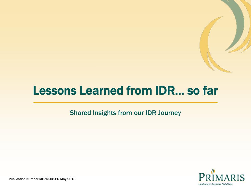 Lessons Learned from IDR… so far Shared Insights from our IDR Journey