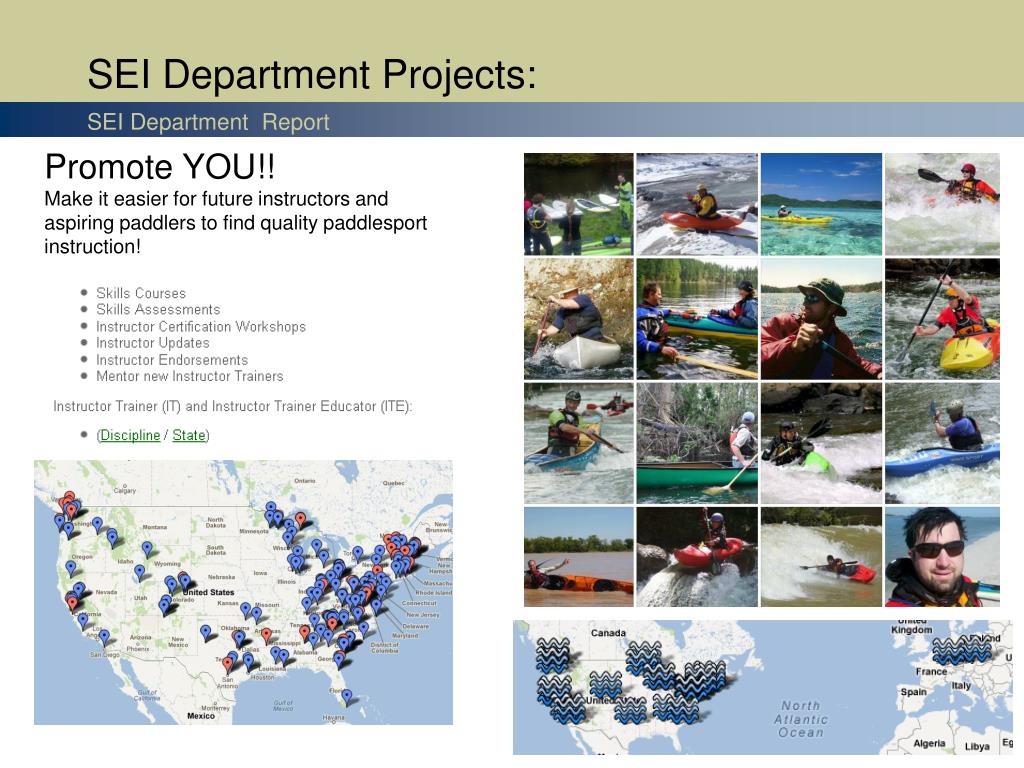 SEI Department Projects: SEI Department Report Promote YOU!! Make it easier for future instructors and aspiring paddlers to find quality paddlesport instruction!