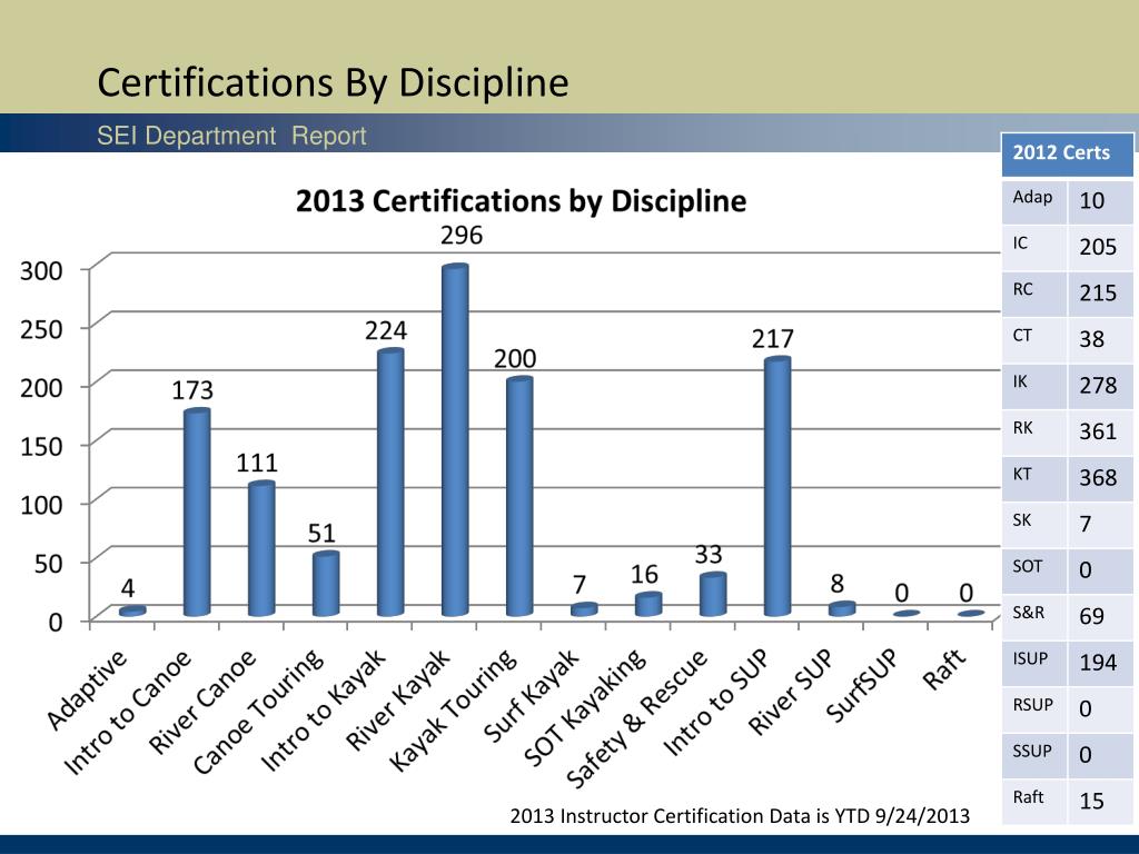 Certifications By Discipline SEI Department Report 2013 Instructor Certification Data is YTD 9/24/2013