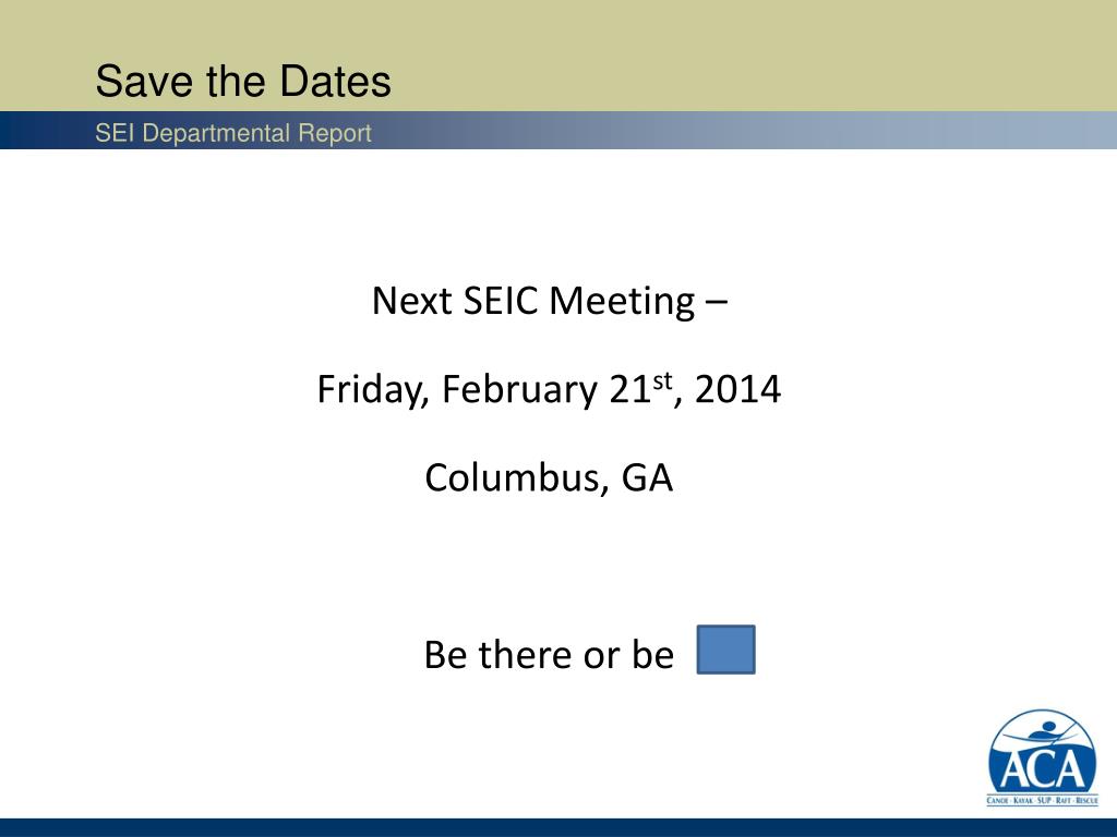 Save the Dates SEI Departmental Report Next SEIC Meeting – Friday, February 21st, 2014 Columbus, GA Be there or be