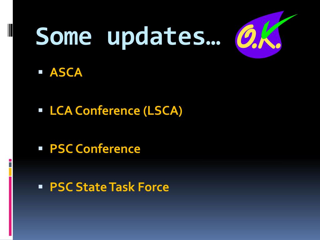 Some updates… • ASCA • LCA Conference (LSCA) • PSC Conference • PSC State Task Force