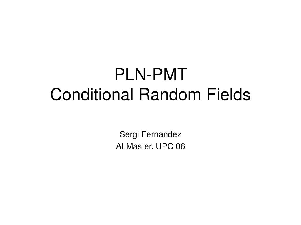PLN-PMT Conditional Random Fields Sergi Fernandez AI Master. UPC 06