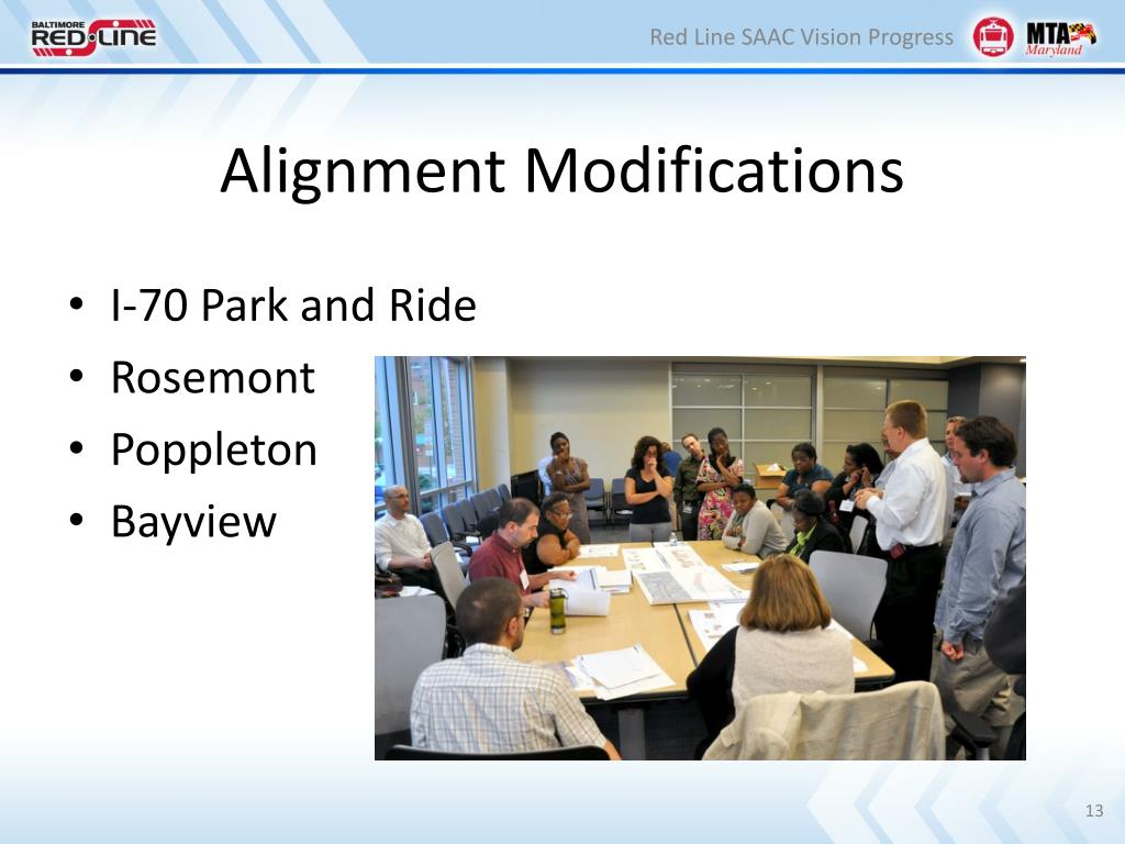Red Line SAAC Vision Progress Alignment Modifications I-70 Park and Ride Rosemont Poppleton Bayview