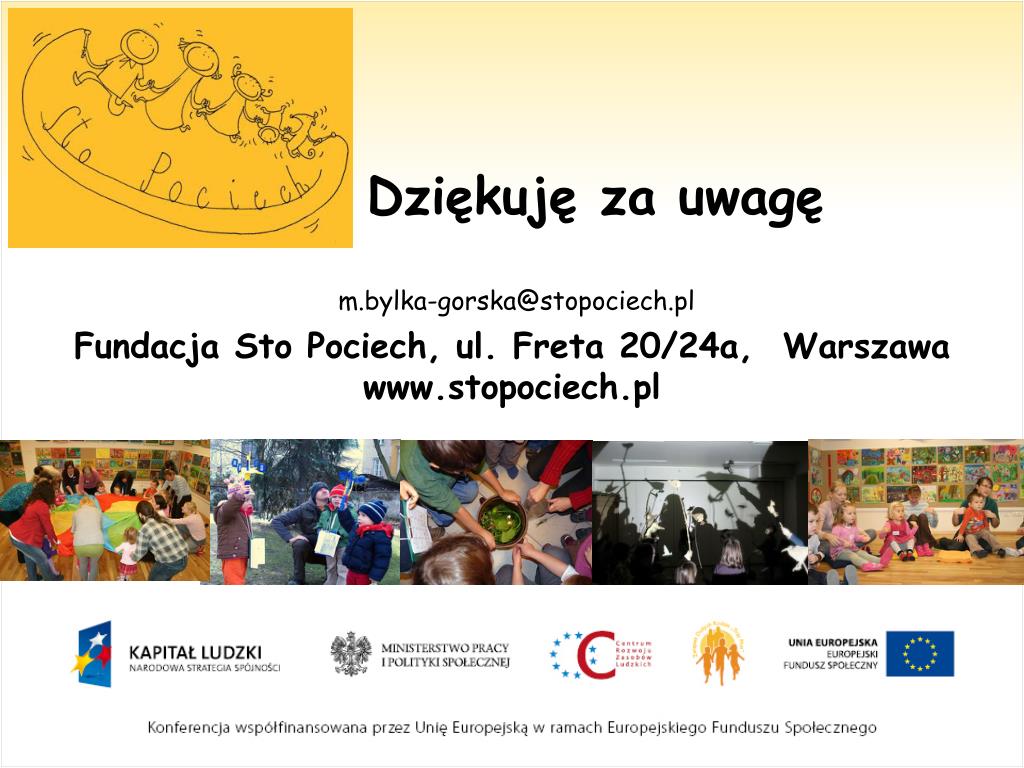 Dziękuję za uwagę m.bylka-gorska@stopociech.pl Fundacja Sto Pociech, ul. Freta 20/24a, Warszawa www.stopociech.pl