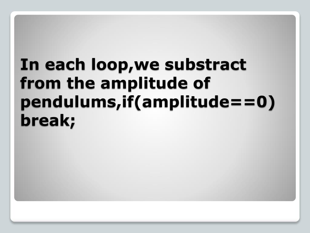 In each loop,wesubstract from the amplitude of pendulums,if(amplitude==0)break;